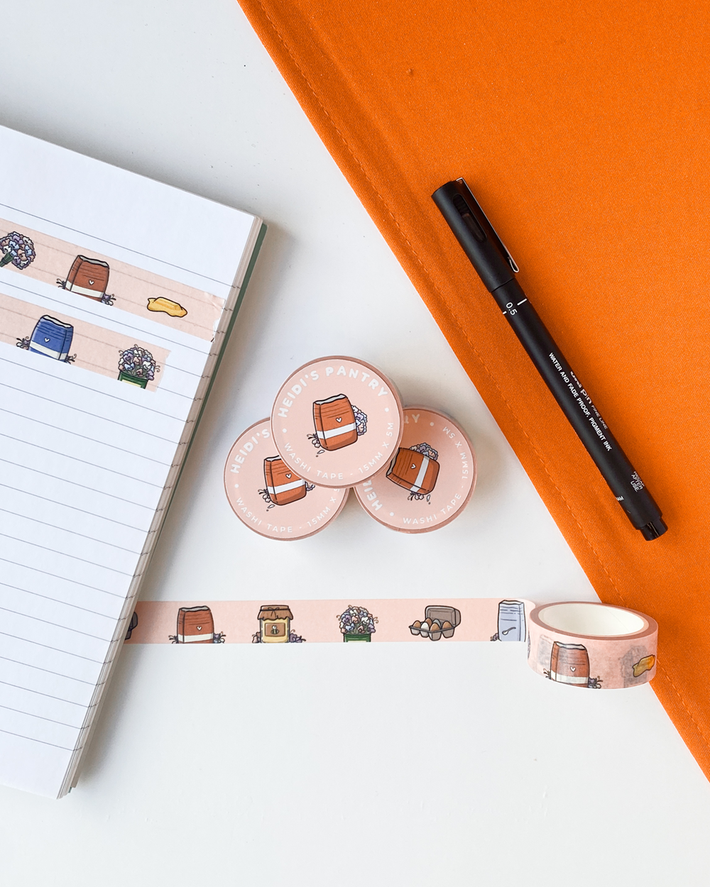 A peek inside Heidi’s pantry — now in washi form! 🍪📔 Filled with cosy kitchen charm, this set features Heidi the Ghost’s favourite baking staples and pantry treasures. Perfect for scrapbookers and junk journalers who love a whisk of whimsy in their pages! ✨