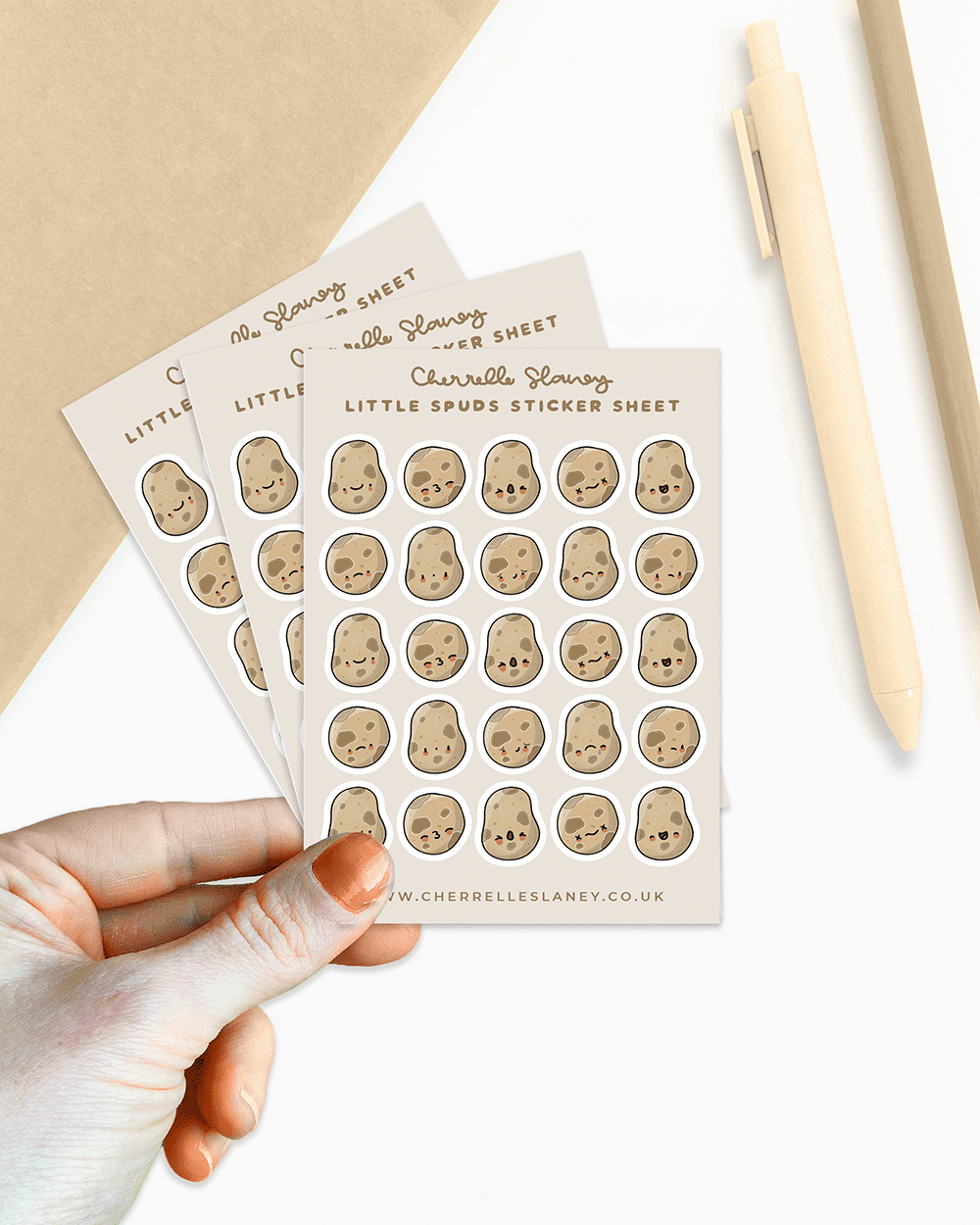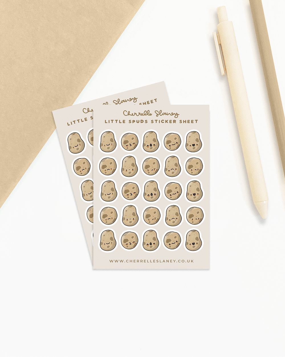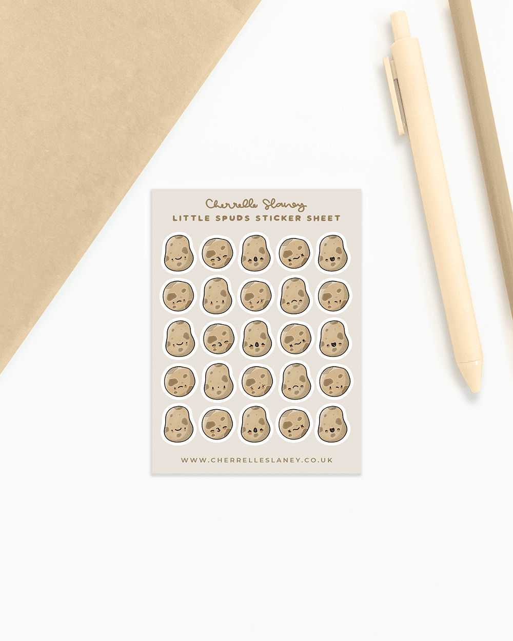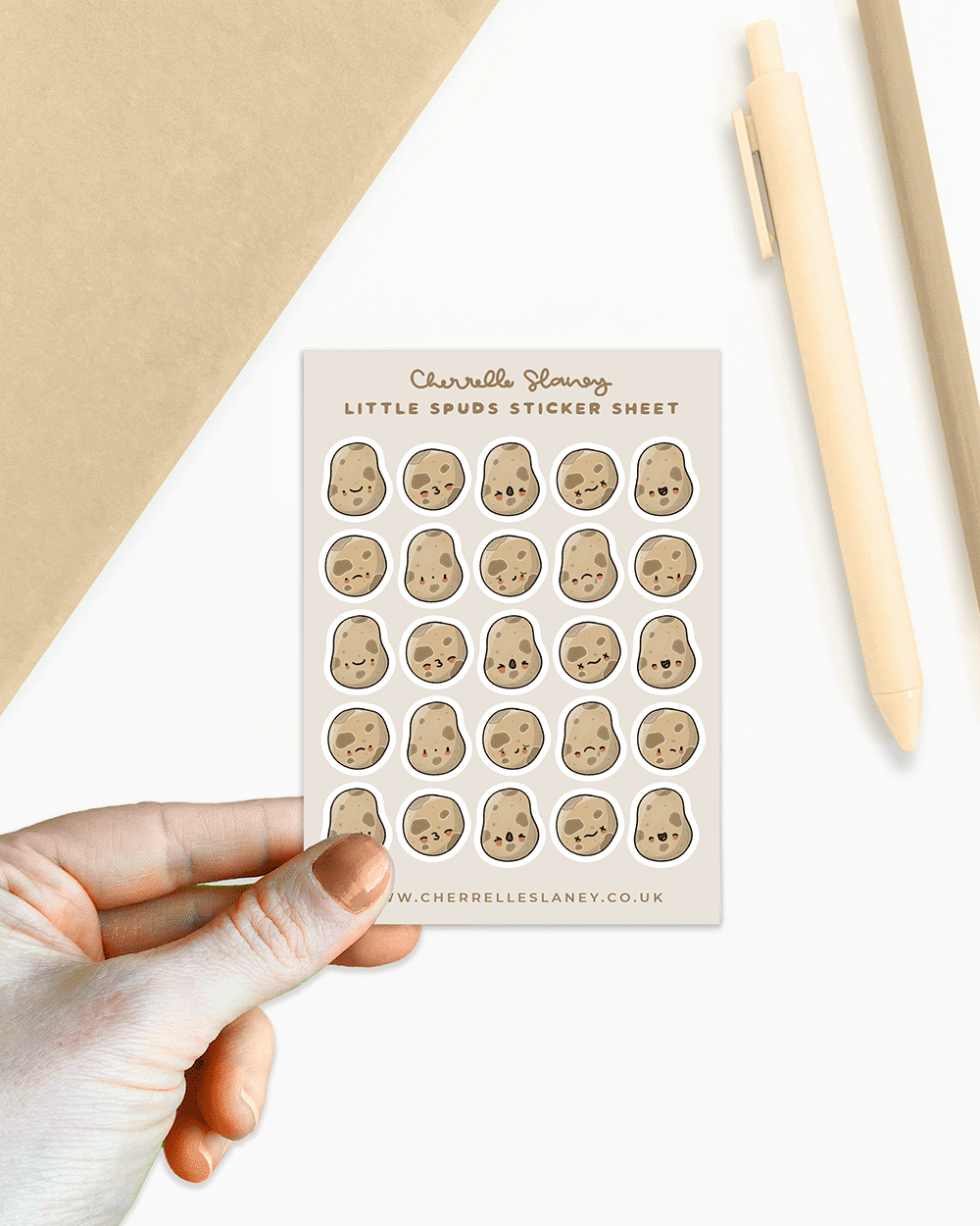 Spice up your planner, vision board, or junk journal with this spud-tacular sticker sheet full of adorable potato illustrations with adorable facial expressions. This kawaii sticker pack is loaded with personality—perfect for adding flavor to scrapbooks, calendars, and journals. Whether you’re feeling a-peel-ing, tater-ly awesome, or just need a little mash of joy, these mini vinyl stickers have you covered!