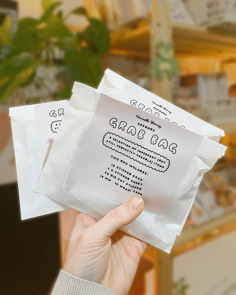 What do we do when a sticker isn’t *quite* perfect? We throw it in a Grab Bag and take 70% off 😜 These Grab Bags are choc full with die cuts, sticker sheets, pins, washi tapes and more. Find the full details of each bag below and grab yourself a bargain! Grab Bag A: • 1x Sticker Pack • 3x Sticker Sheet • 5x Die Cut Sticker • 1x Pin Badge • 1x Washi Tape Grab Bag B: • 1x Sticker Sheet • 2x Washi Tape • 1x Pin Badge • 1x Bookmark • 5x Die Cut Sticker Grab Bag C: • 2x Sticker Sheet • 1x Greeting Card • 5x Die Cut Sticker Grab Bag D: • 3x Sticker Sheets • 10x Die Cut Sticker (All with a Pick’n’Mix Theme)