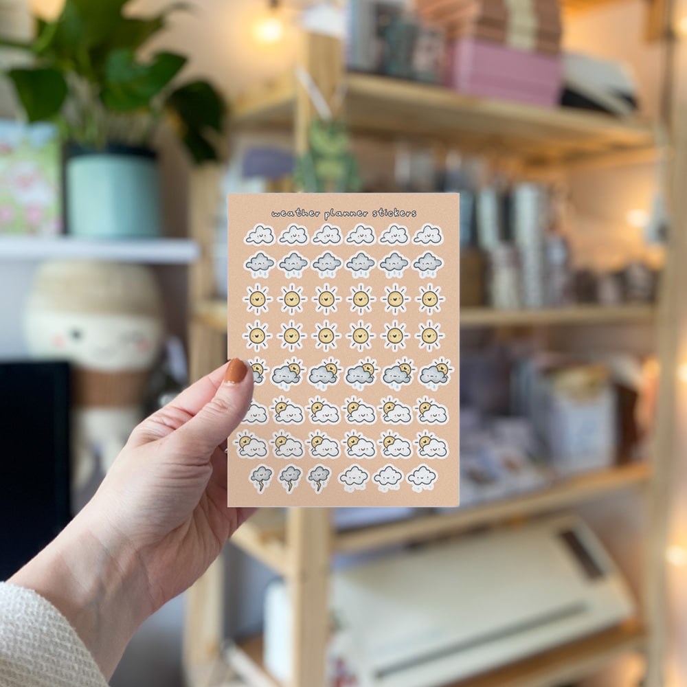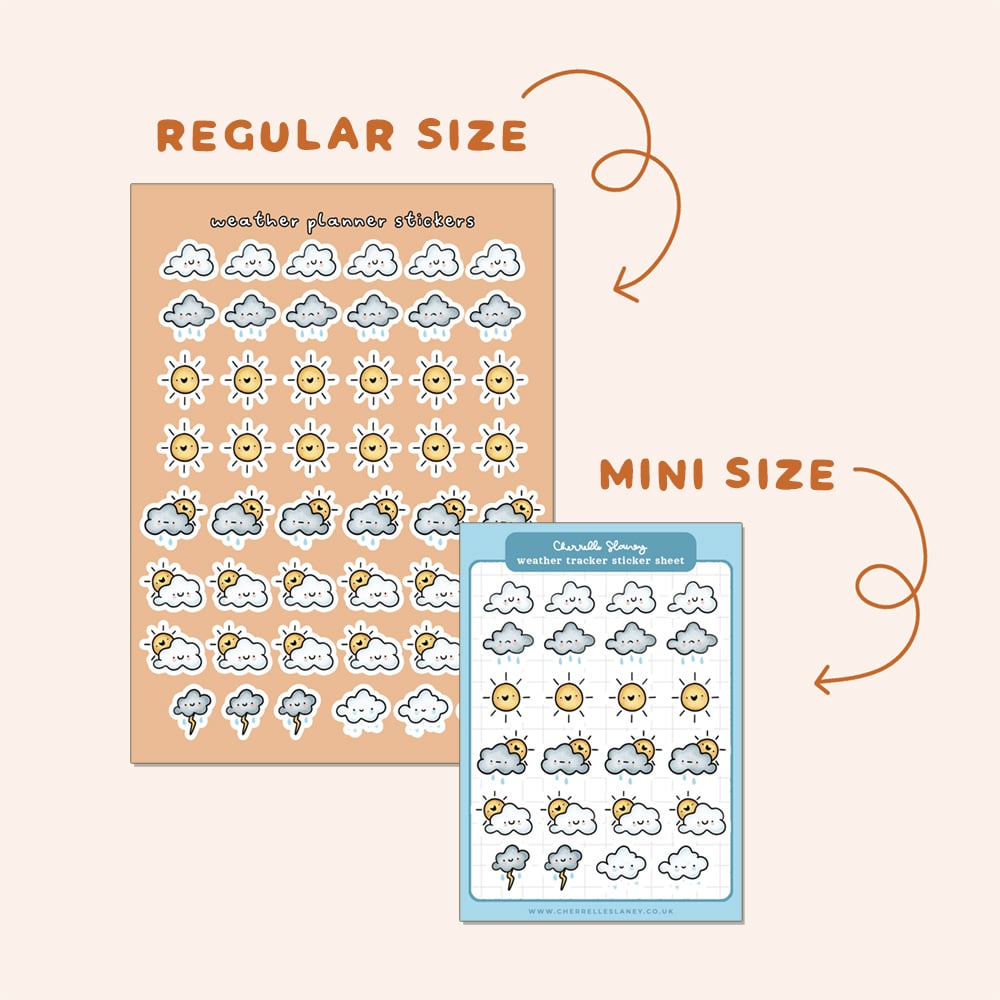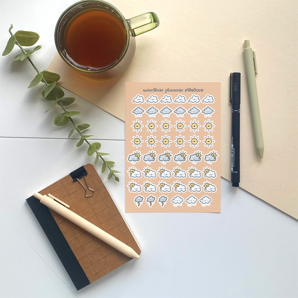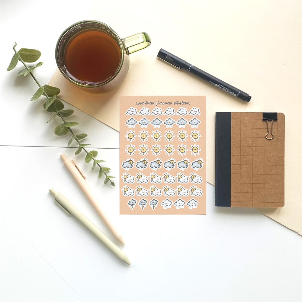 Keep your forecasts extra adorable with this kawaii weather tracking sticker sheet — perfect for planners, journals, or storm-chasing scrapbooks! From sunny smiles to moody little rainclouds, these cute weather icons make tracking the forecast a total breeze. Whether you’re under the weather or feelin’ fine, this sticker set will brighten up your day in anyclimate! • Gloss Waterproof Stickers • Sheet size: – Regular: approx 12 x 16 cm – Mini: approx 8 x 11 cm