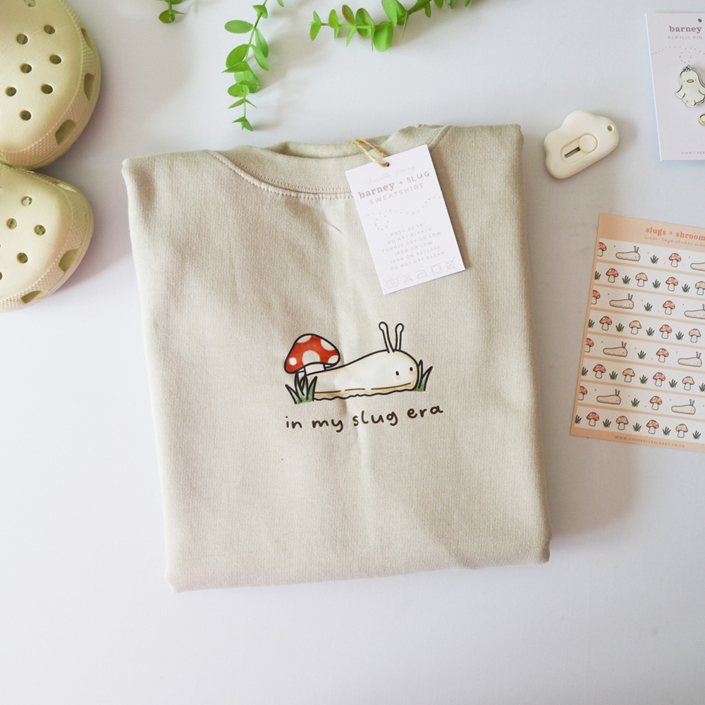Mushroom Colour Sweatshirt with Cute Slug Motif Available in Sizes XS – XXL Note: this item may take up to 1 week to be dispatched. If you order other products with this item they will all be shipped together.